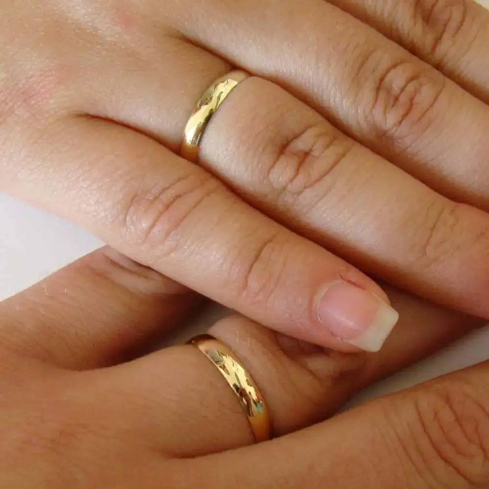 é a escolha perfeita para casais que valorizam alianças de ouro clássicas, delicadas com um toque de conforto moderno.