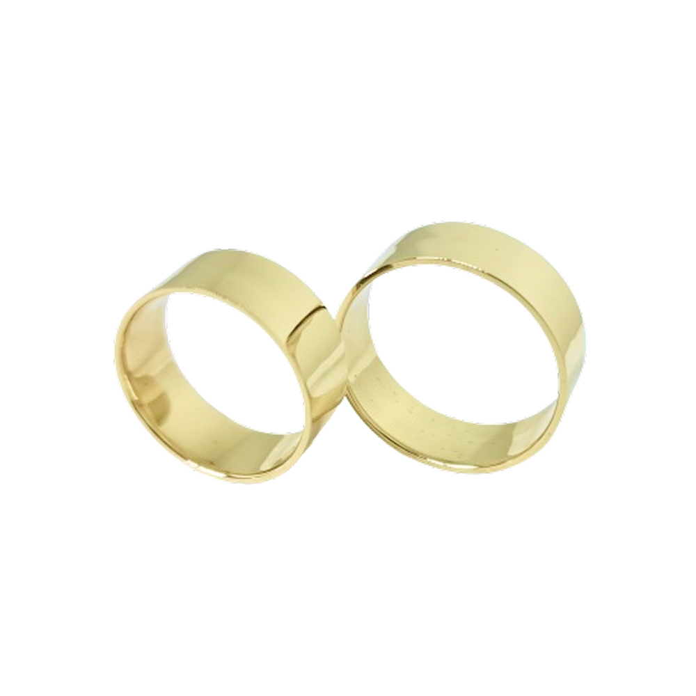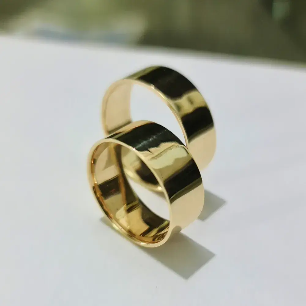 Com acabamento liso em ambas alianças de ouro, esse modelo apresenta um design exterior reta e interno reto, garantindo um encaixe perfeito no dedo — ideal para o uso contínuo. O design robusto e o aro das alianças de ouro com 8,0 mm de largura destacam uma escolha cheia de personalidade — símbolo de uma união forte e inesquecível.