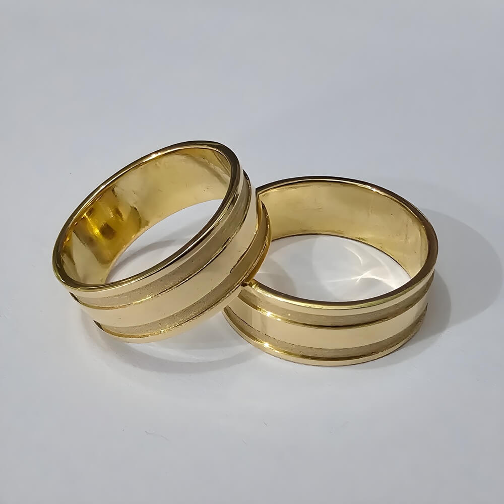 Seu formato reto e anatômico oferece conforto absoluto no uso contínuo, enquanto o acabamento em ouro 10k garante durabilidade e valor eterno. Ideal para casais que desejam uma aliança com presença, estilo e equilíbrio entre o clássico e o contemporâneo.