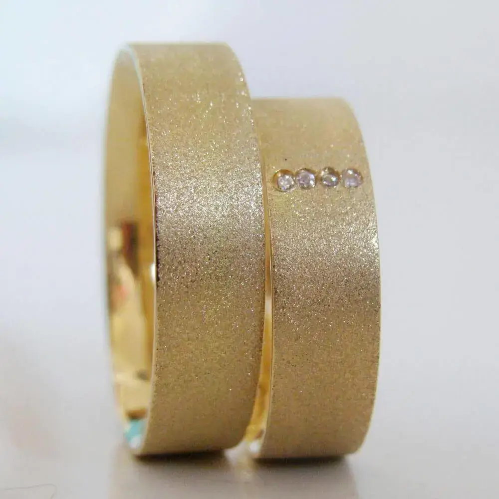 Elegância, brilho e equilíbrio em cada detalhe. A Aliança de Casamento de Ouro 10k Reta Diamantada com 4 Brilhantes é a representação perfeita da união entre sofisticação e significado. Seu formato anatômico oferece conforto absoluto para o uso diário, enquanto o acabamento diamantado reflete a luz com intensidade incomparável, criando um visual moderno e luxuoso.