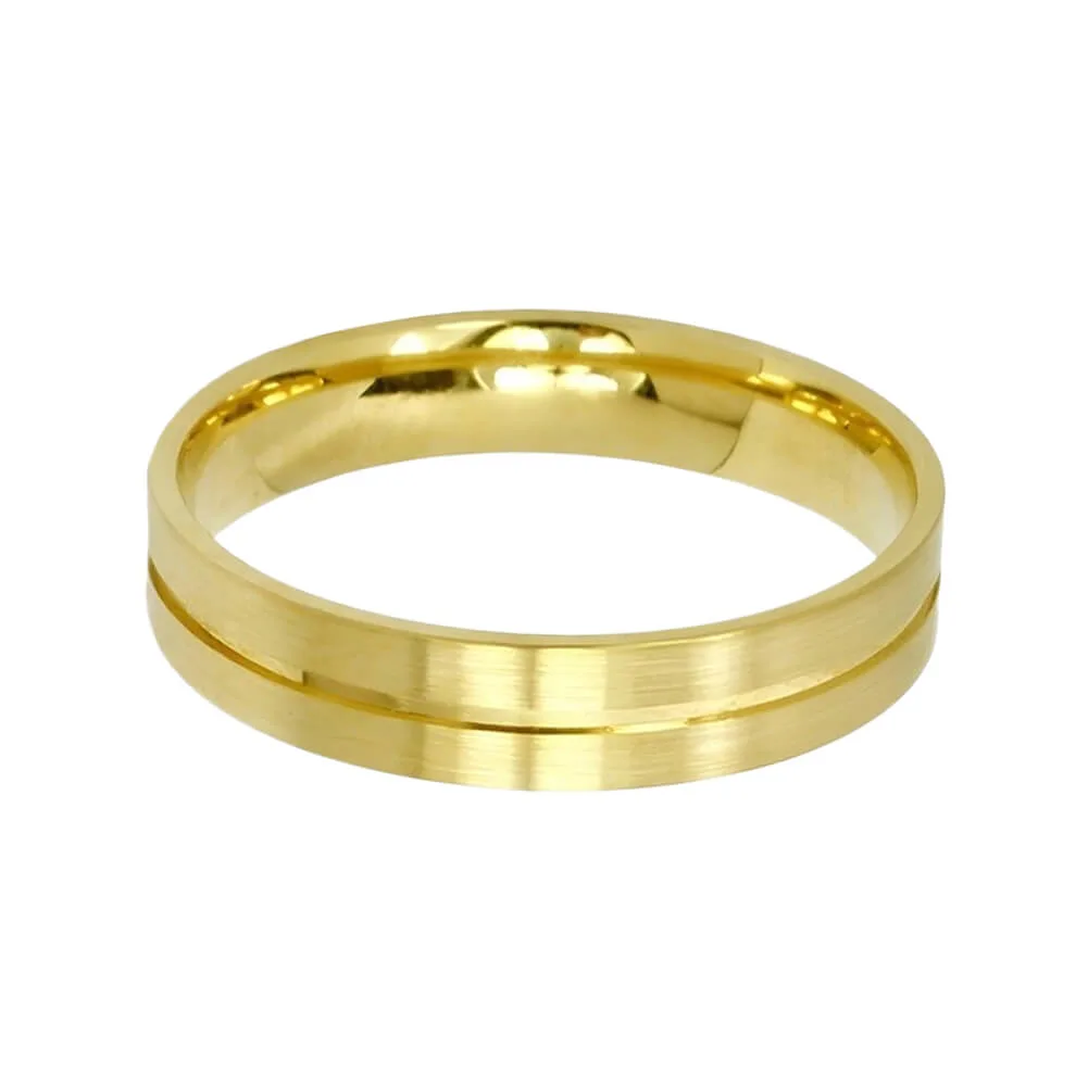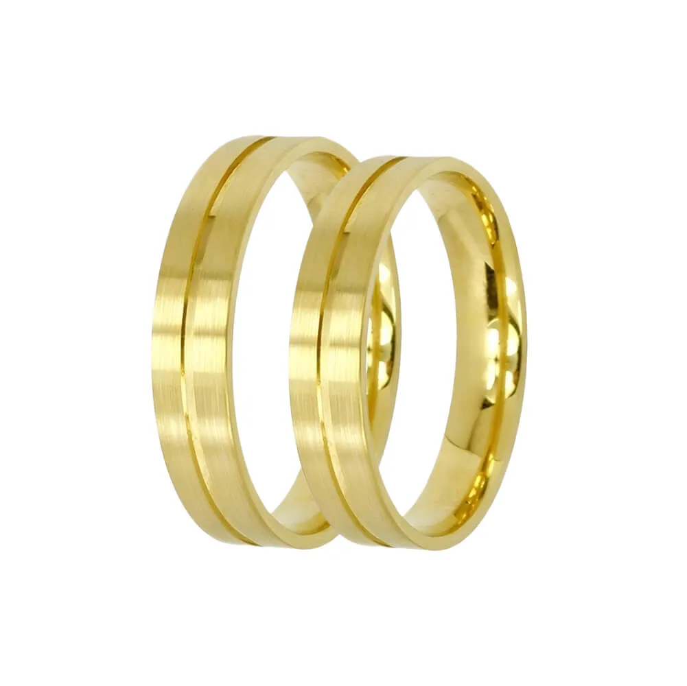 O friso central liso cria um contraste refinado com o acabamento fosco, valorizando o brilho natural do ouro 10k e realçando a sofisticação do modelo. Uma joia versátil e atemporal, perfeita para casais que desejam uma aliança com estilo e significado.