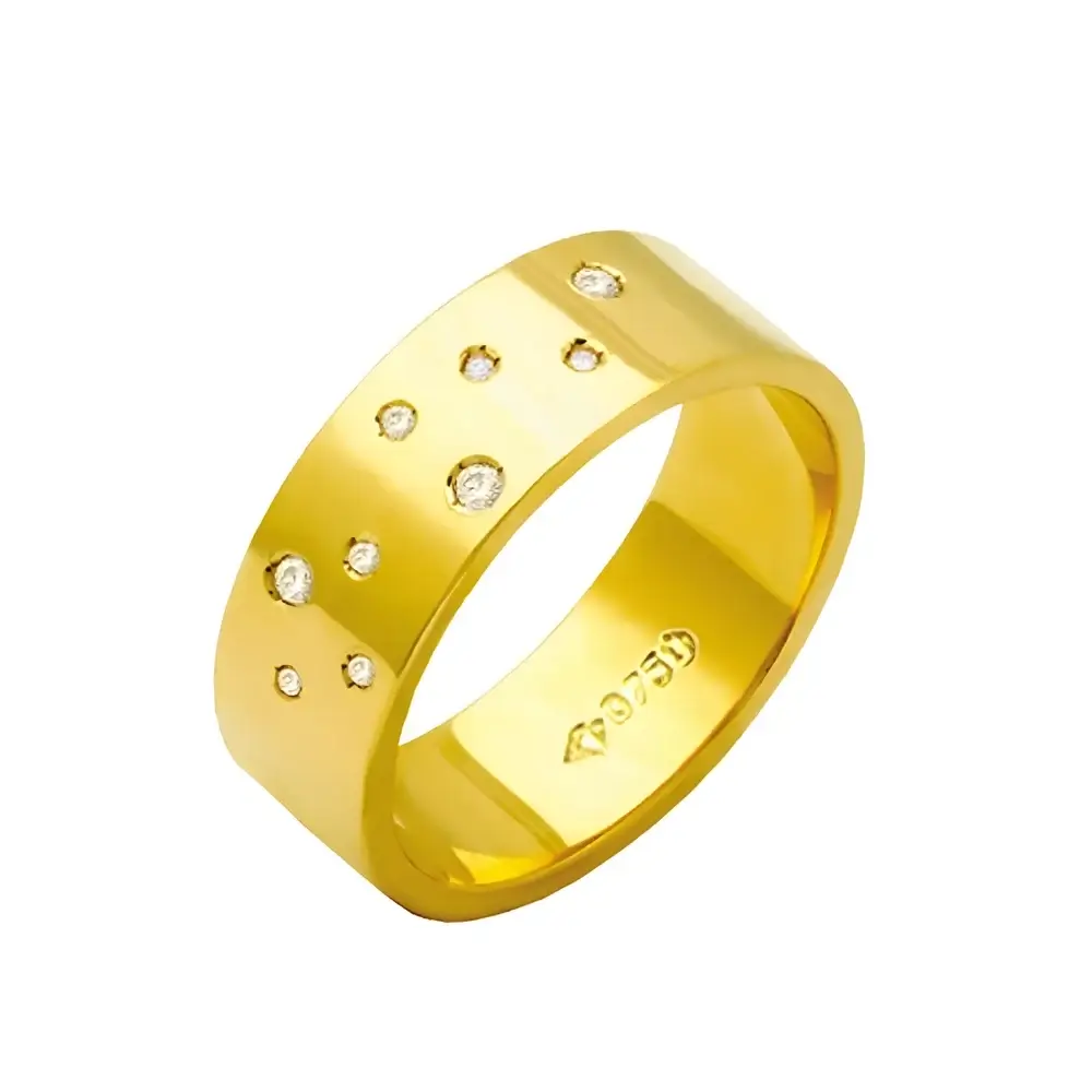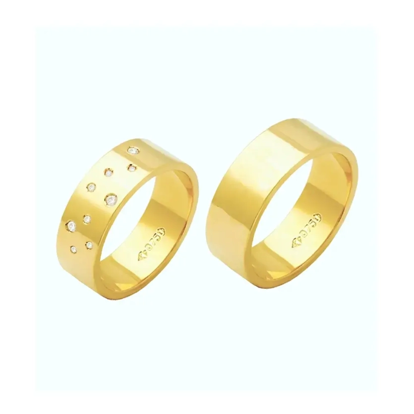 ALIANÇA DE OURO 10K RETA QUADRADA COM CONSTELAÇÃO DE BRILHANTES