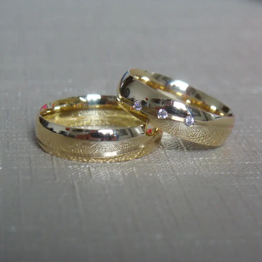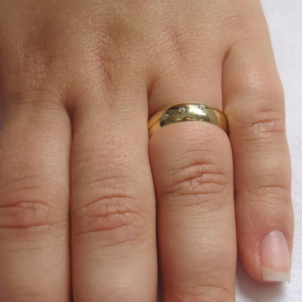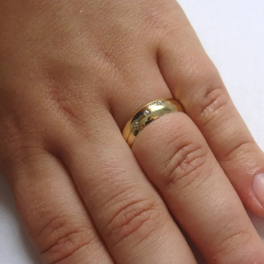 ALIANÇA DE OURO 18K ABAULADA COM FRISO TRANVERSAL E 3 BRILHANTES