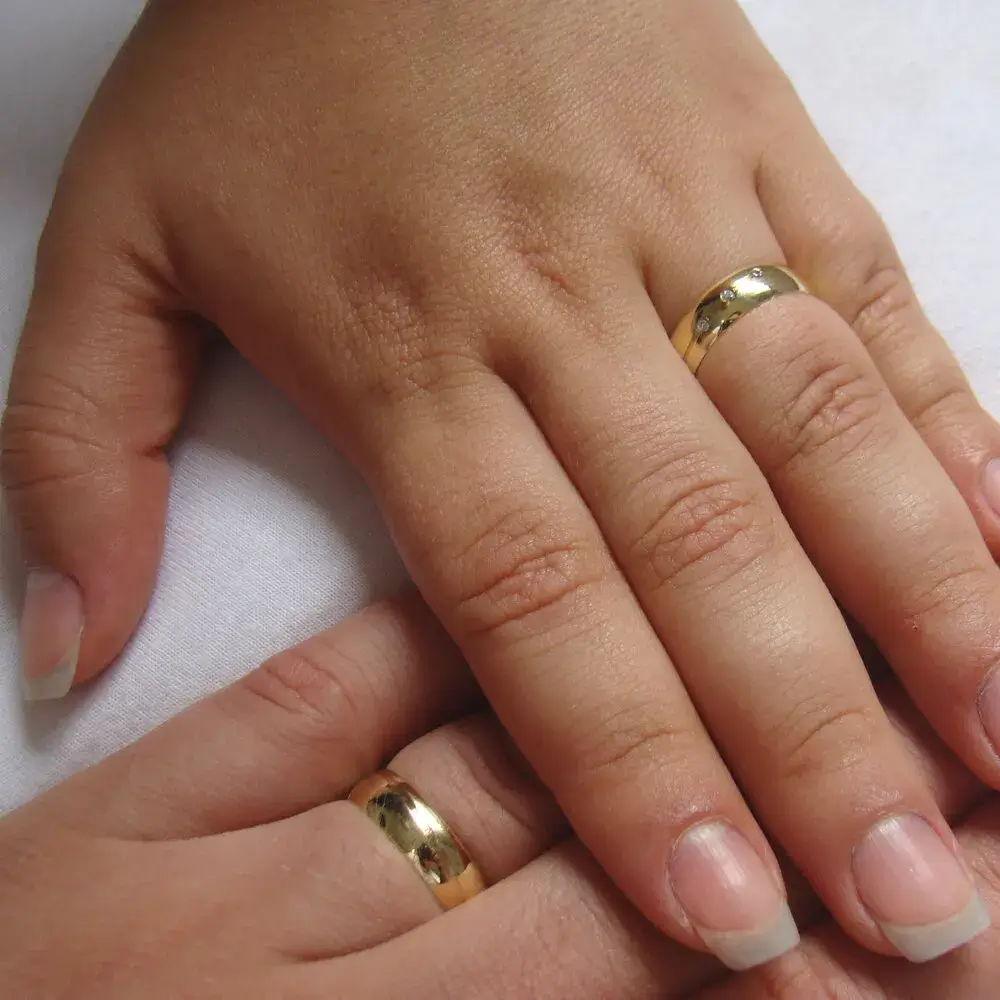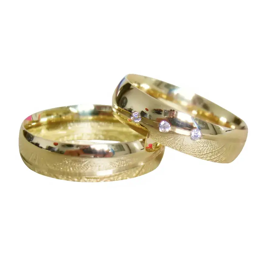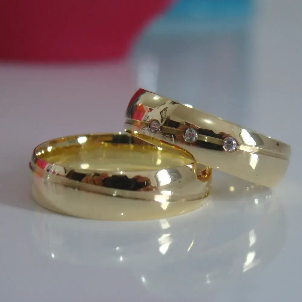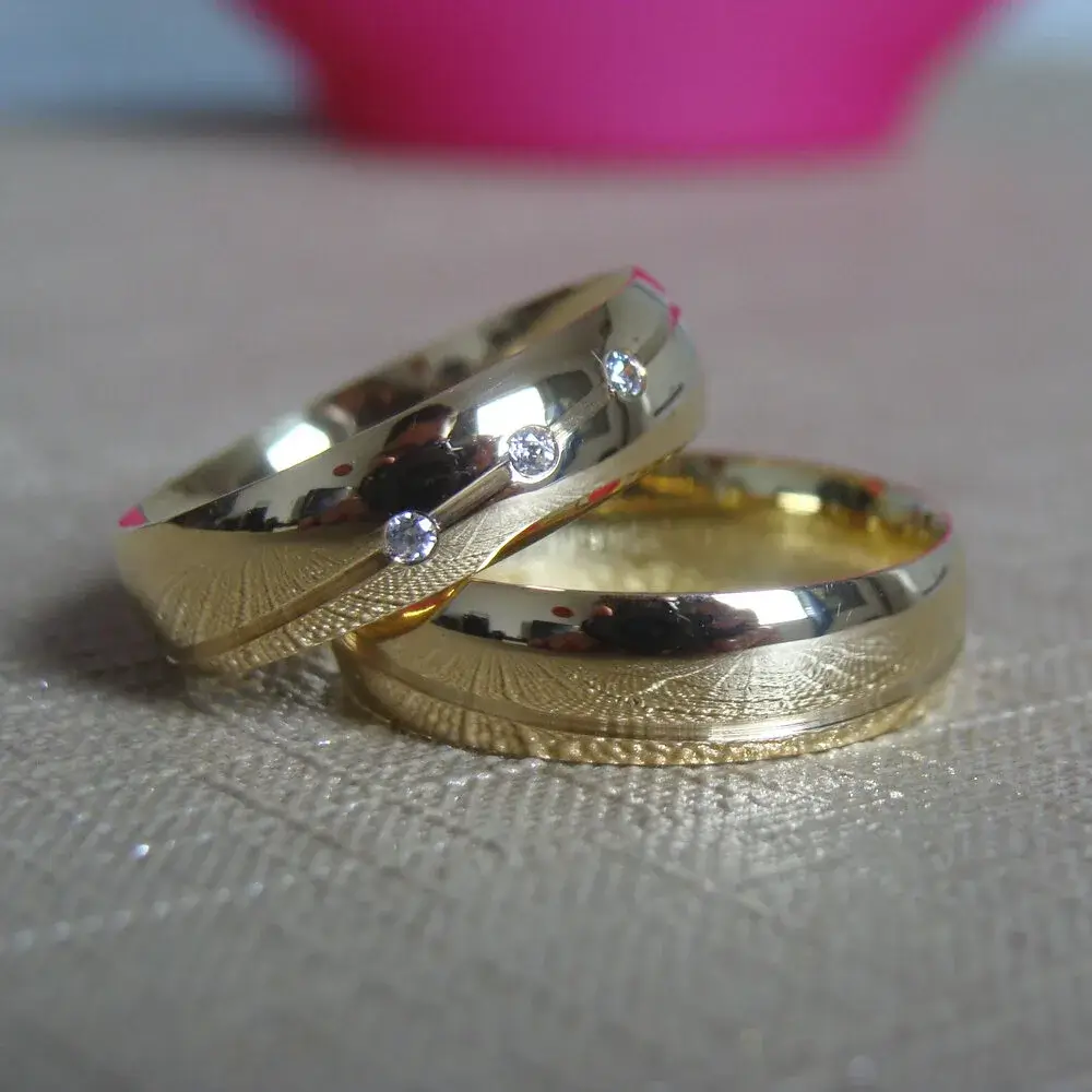 ALIANÇA DE OURO 18K ABAULADA COM FRISO TRANVERSAL E 3 BRILHANTES