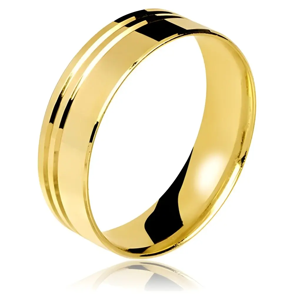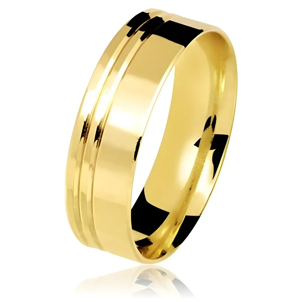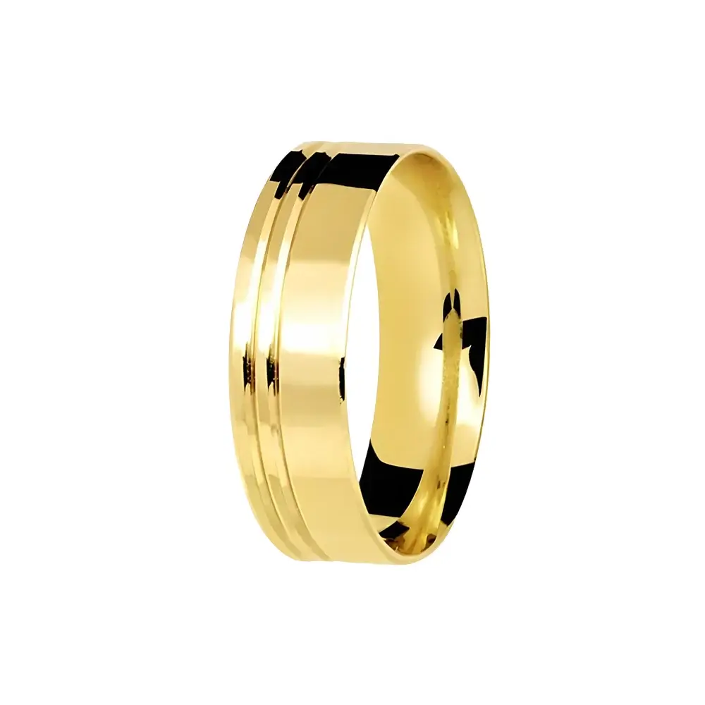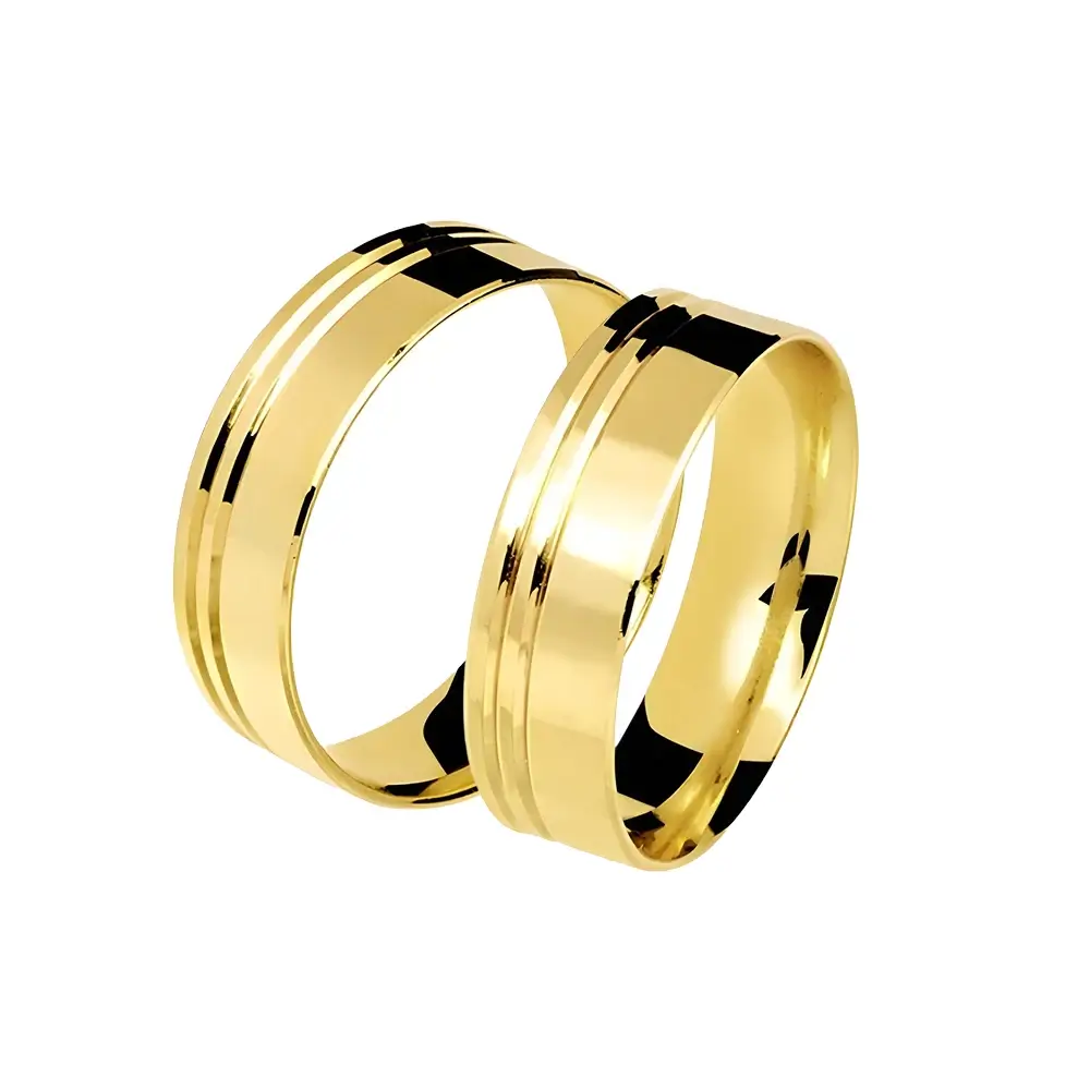 Ideal para casais que buscam uma joia discreta, mas cheia de presença, esta aliança representa a união de dois caminhos que seguem lado a lado — assim como os frisos que adornam sua superfície. Um símbolo de amor verdadeiro, eterno e harmonioso.