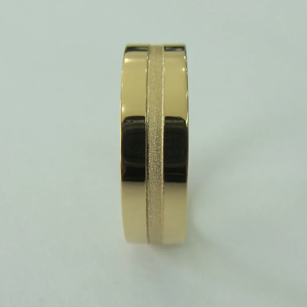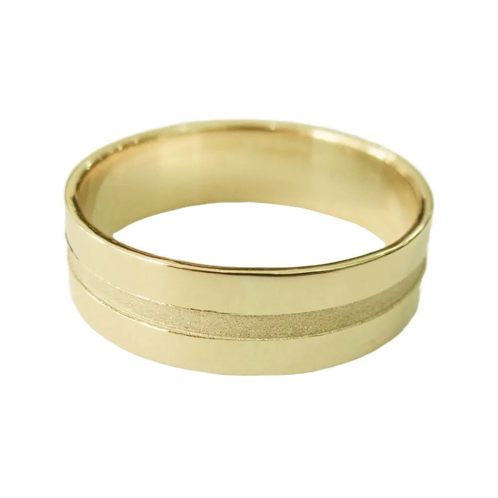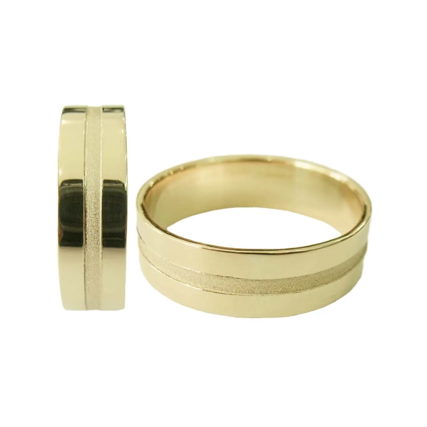 O contraste entre o brilho do friso e o acabamento liso valoriza os detalhes da peça, tornando-a ideal para casais que buscam uma aliança com estilo, conforto e significado. O design anatômico garante um encaixe perfeito no dedo, proporcionando conforto para o uso contínuo e durabilidade para toda a vida.