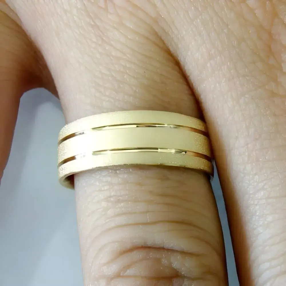 Os frisos laterais conferem um toque moderno e refinado, destacando ainda mais o brilho do ouro 18k. Essa aliança é ideal para casais que desejam uma joia marcante e atemporal — símbolo de um amor forte, duradouro e cheio de significado.