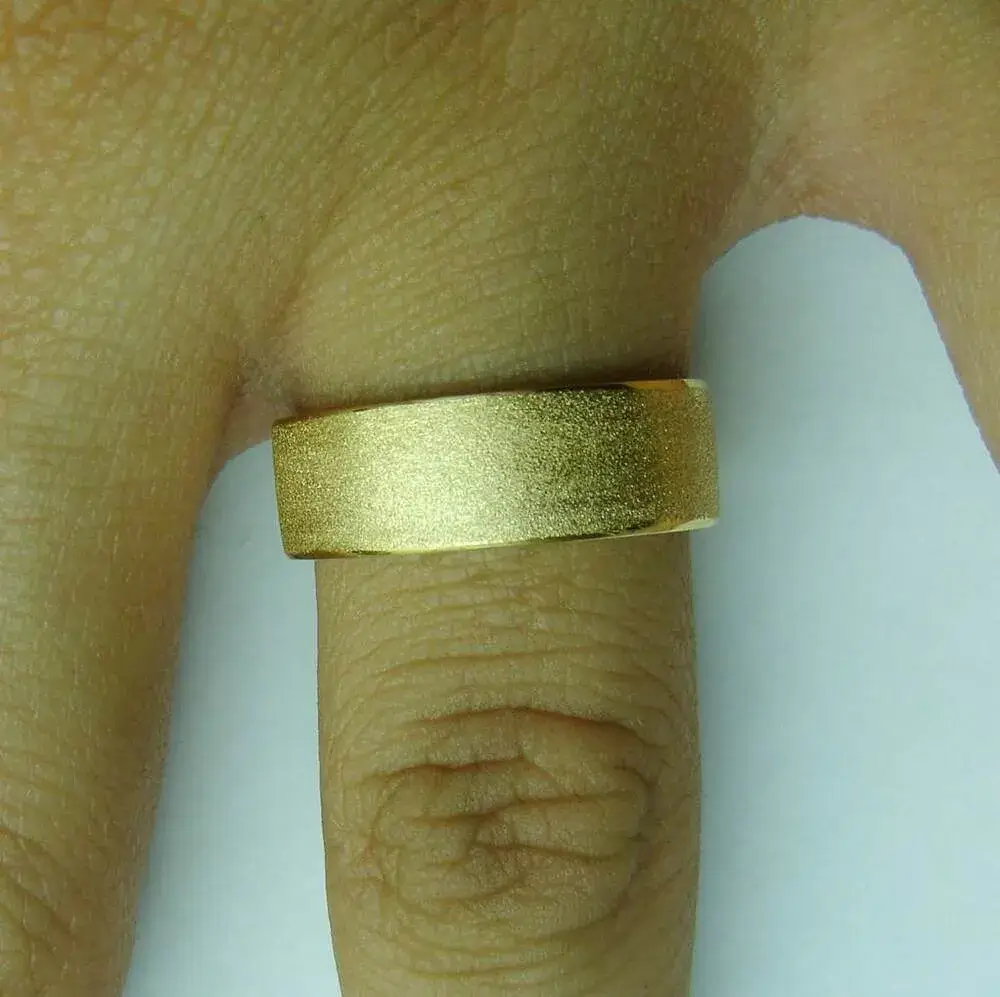Seu design reto realça o acabamento diamantado, que reflete a luz com intensidade e cria um efeito reluzente incomparável. As laterais finas lisas acrescentam contraste e harmonia, equilibrando modernidade e sutileza. O formato anatômico garante bem-estar no uso contínuo, tornando esta peça perfeita para simbolizar uniões que brilham para sempre.