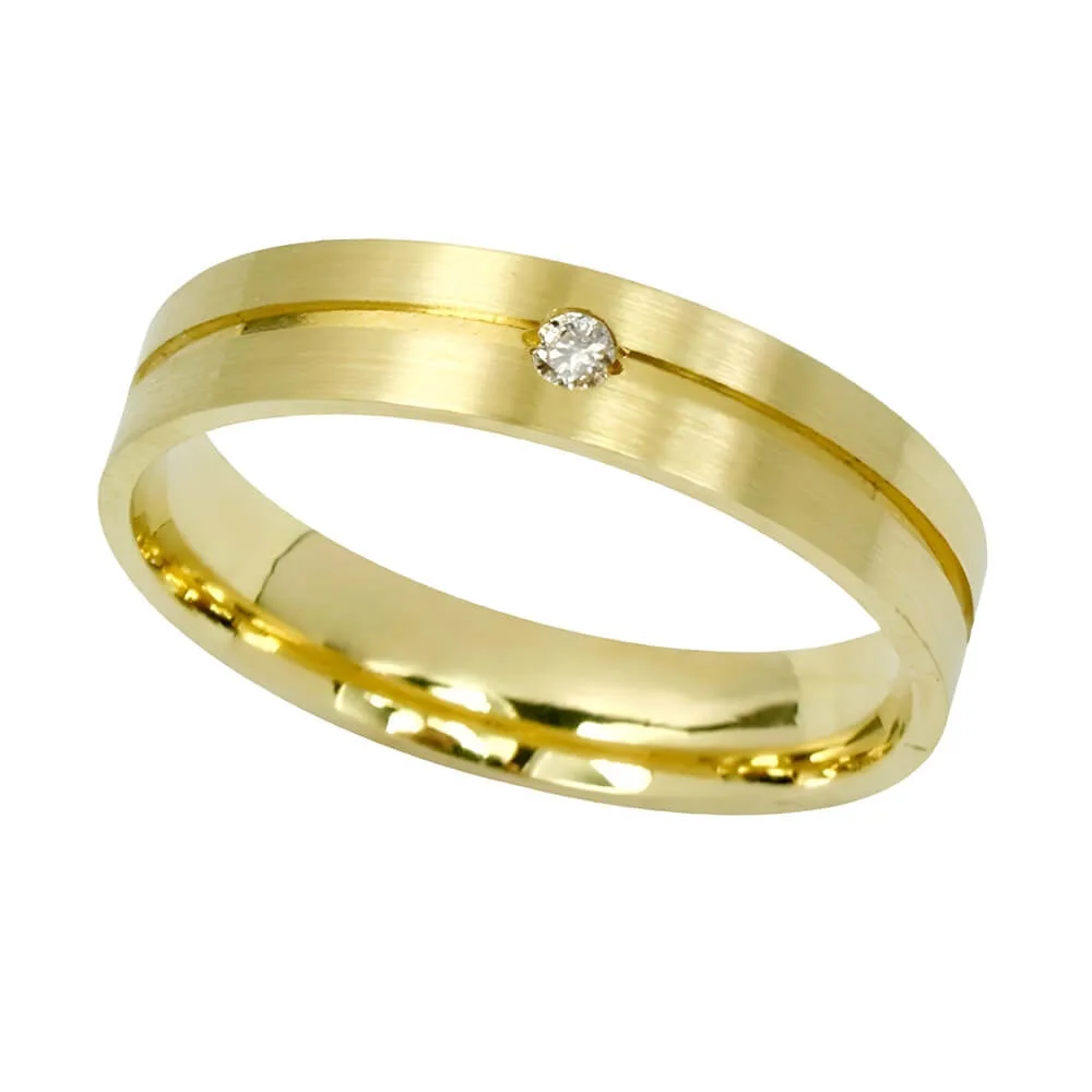 O brilhante delicadamente cravado na aliança feminina representa a luz e a pureza do amor verdadeiro. O formato anatômico garante conforto absoluto, tornando esta aliança perfeita para o uso diário e para casais que desejam uma joia com personalidade e beleza atemporal.