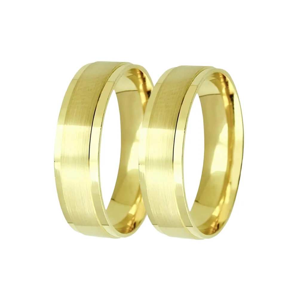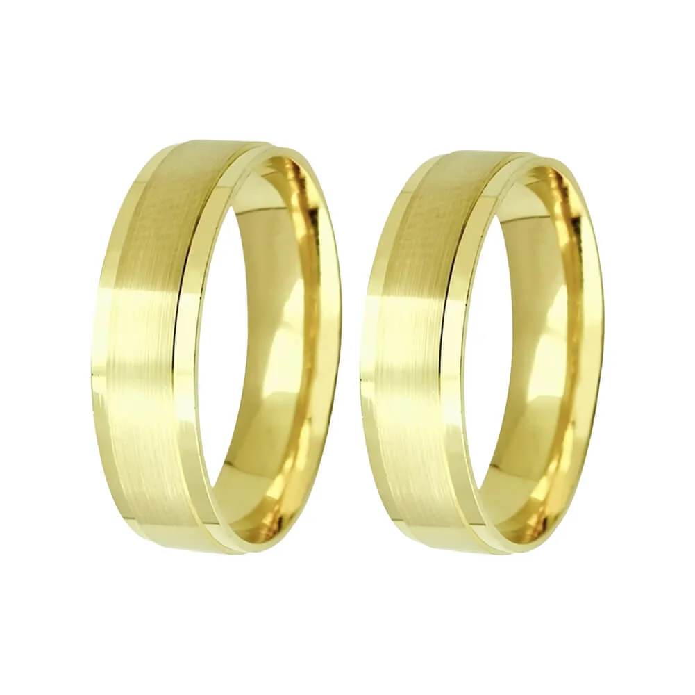 Elegância e equilíbrio em cada detalhe. A Aliança de Ouro 18k Reta Fosca no Centro e Laterais Rebaixadas Polidas é uma joia que reflete modernidade e sofisticação. Seu design reto destaca o contraste entre o acabamento fosco central, que transmite sobriedade e requinte, e as laterais polidas rebaixadas, que realçam o brilho intenso do ouro 18k.