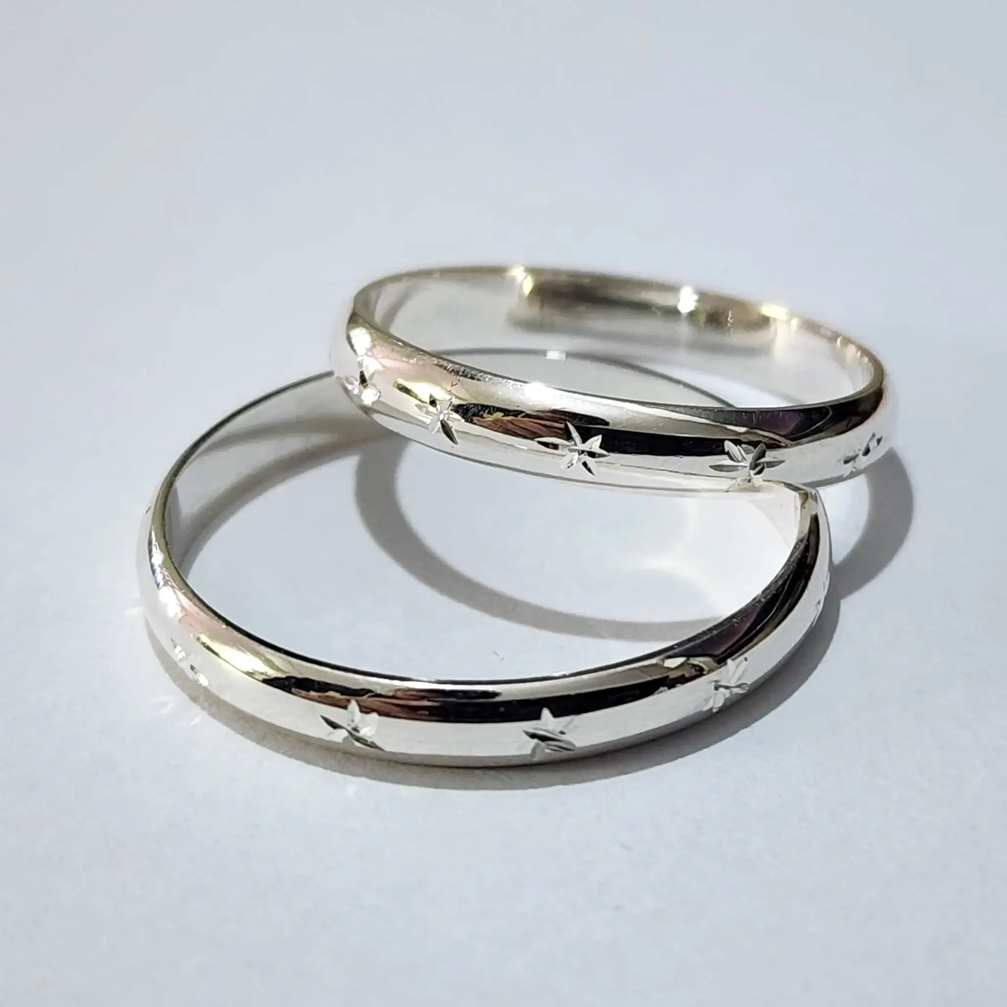 Essas alianças de namoro de prata clássica tem design abaulado e conforto reto, que encanta diferentes estilos e personalidades. Este modelo de alianças de namoro em prata possui largura de 3,5 mm com Detalhes Estrela ao longo do aro e acabamento polido/espelhado. Uma escolha perfeita para casais que desejam marcar o namoro ou compromisso com romantismo e estilo! Lindas e atemporais, as alianças de compromisso em prata são símbolos queridos que nunca saem de moda e são perfeitas para quem procura um metal nobre e um símbolo de amor e paixão.