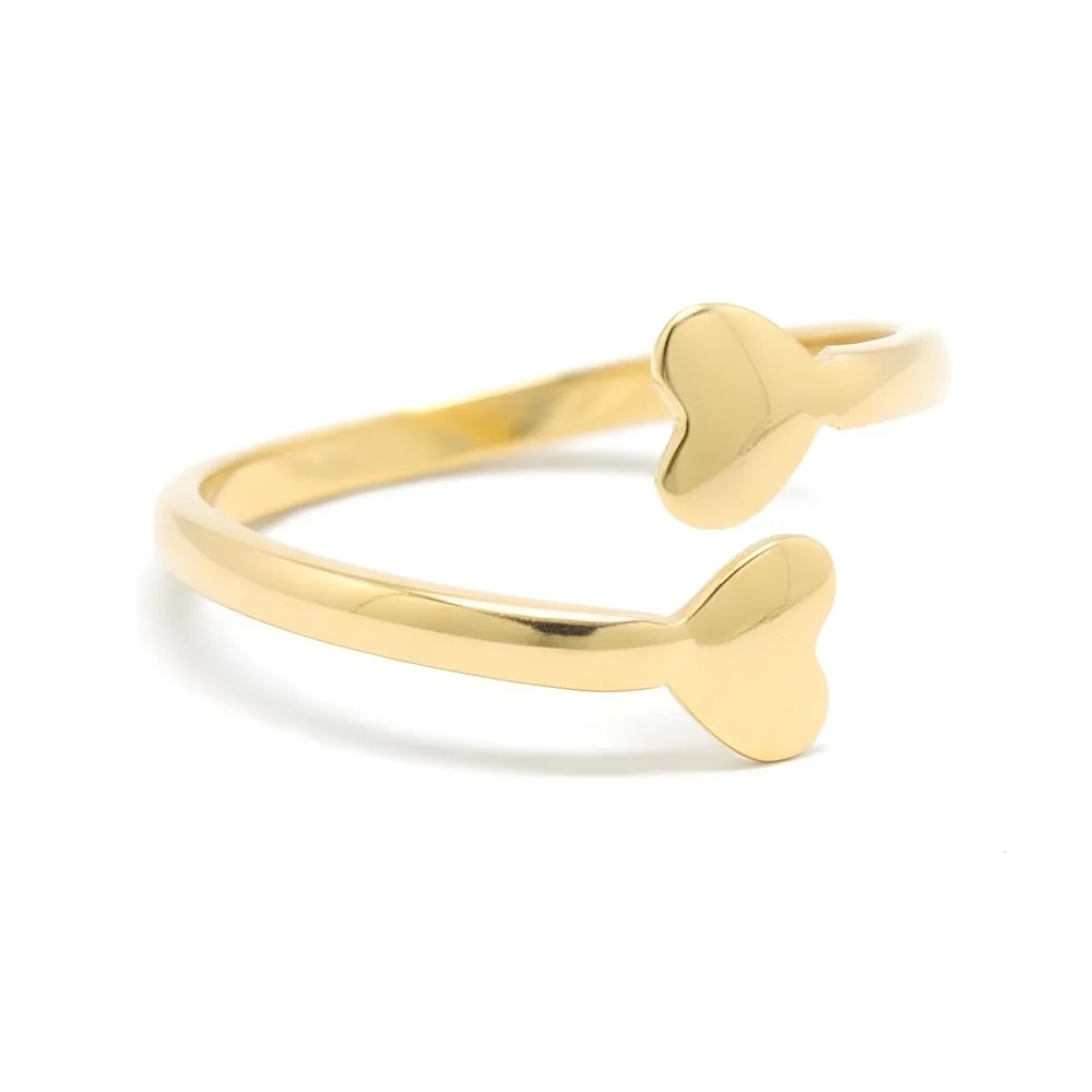Anel de Ouro 18k 2 Corações Ajustável
