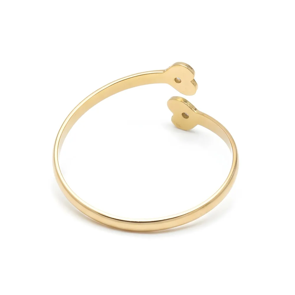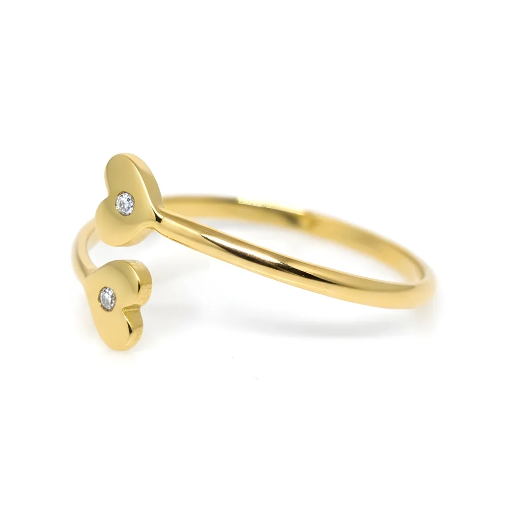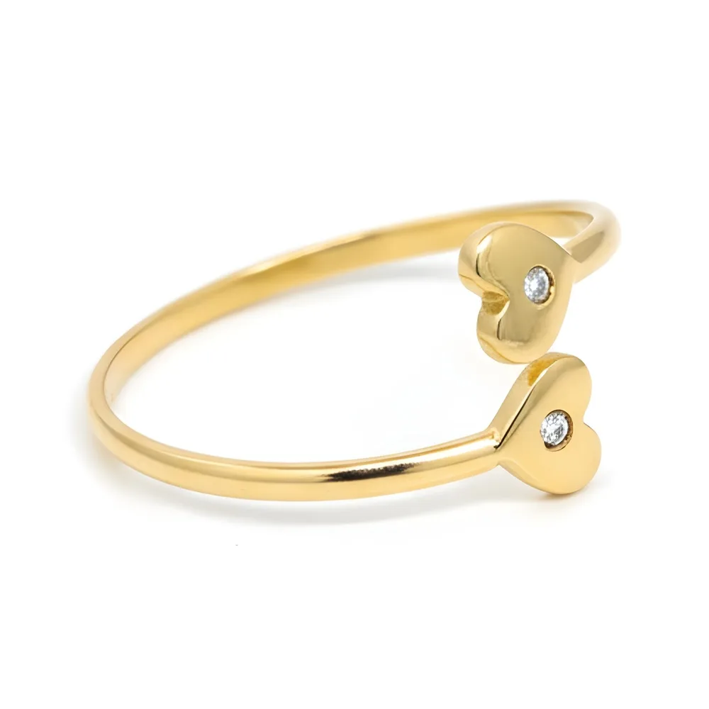 Anel de Ouro 18k Falange com 2 Corações e Zircônias