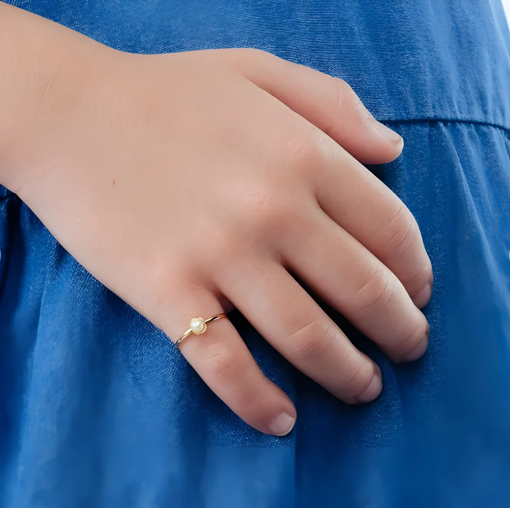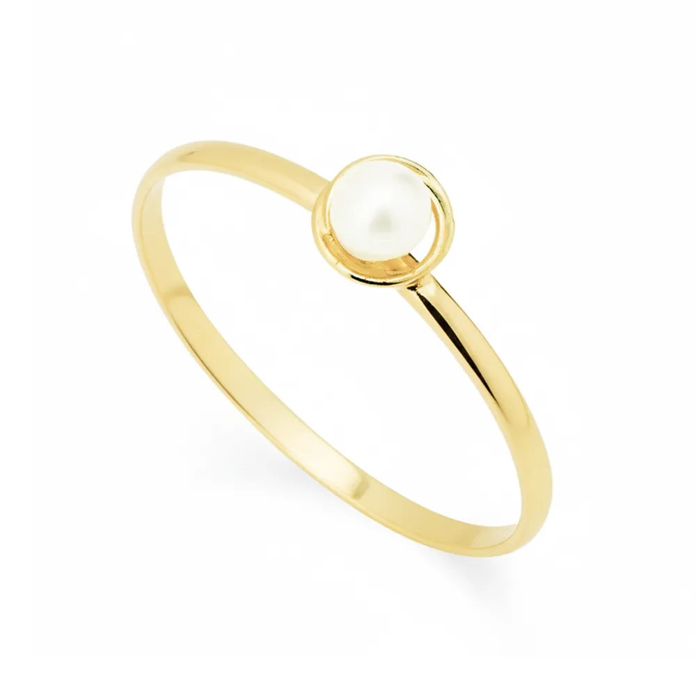 Anel Solitário de Ouro 18k Infantil com Pérola Rocócó