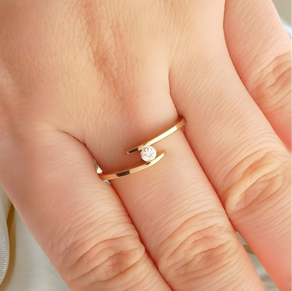 Anel Solitário de Ouro 18k com Brilhante Suspenso 10 pontos
