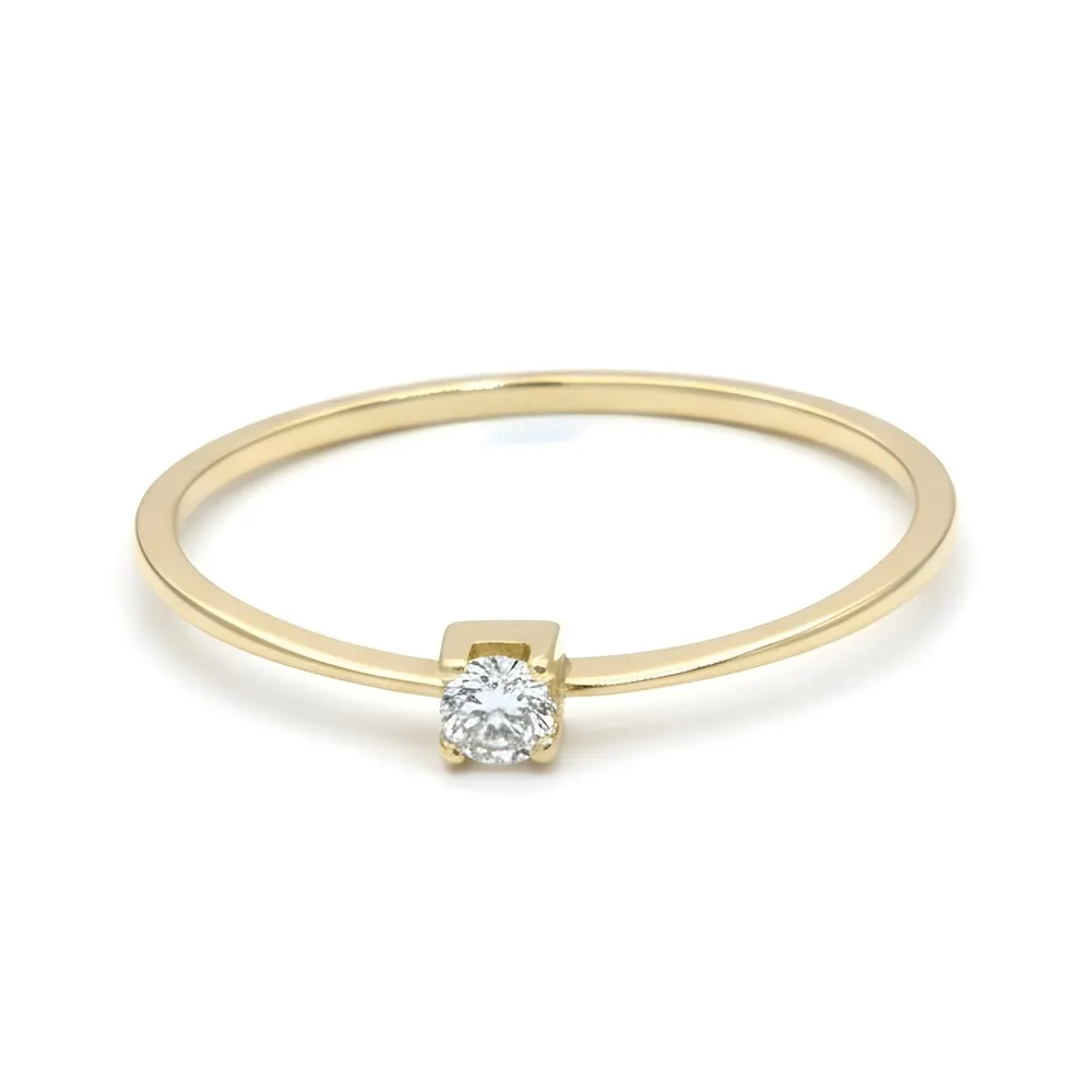 Anel Solitário de Ouro 18k com Brilhante