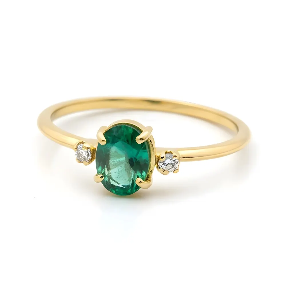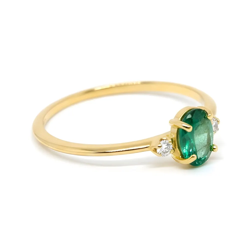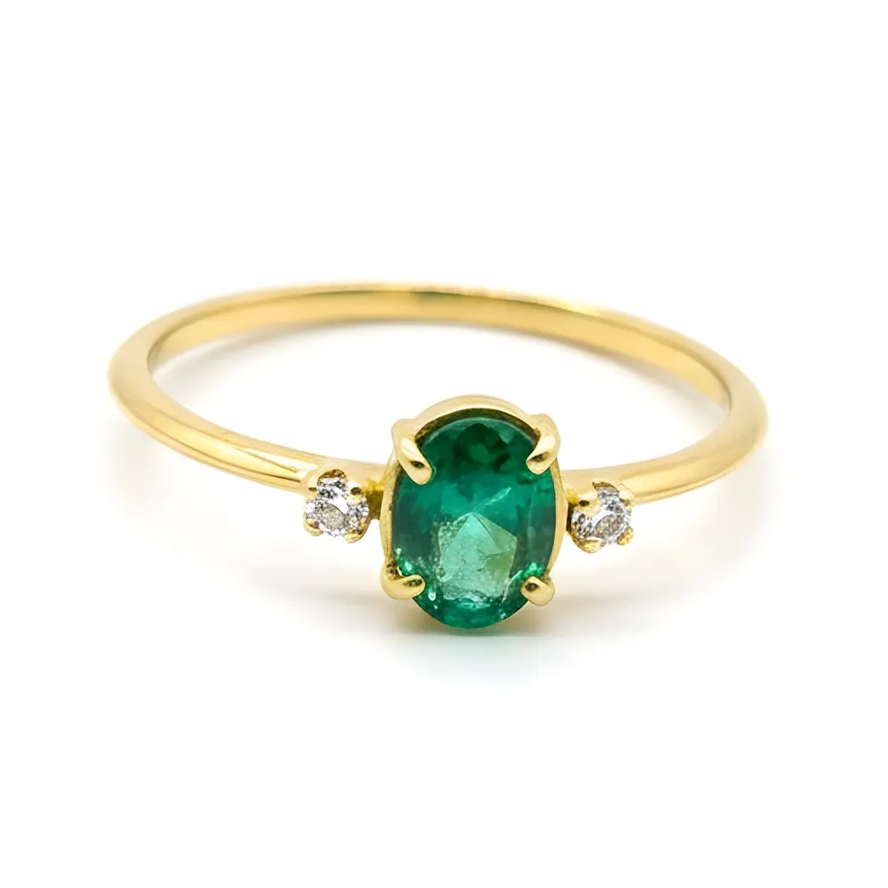 Anel Solitário de Ouro 18k com Esmeralda e Brilhantes