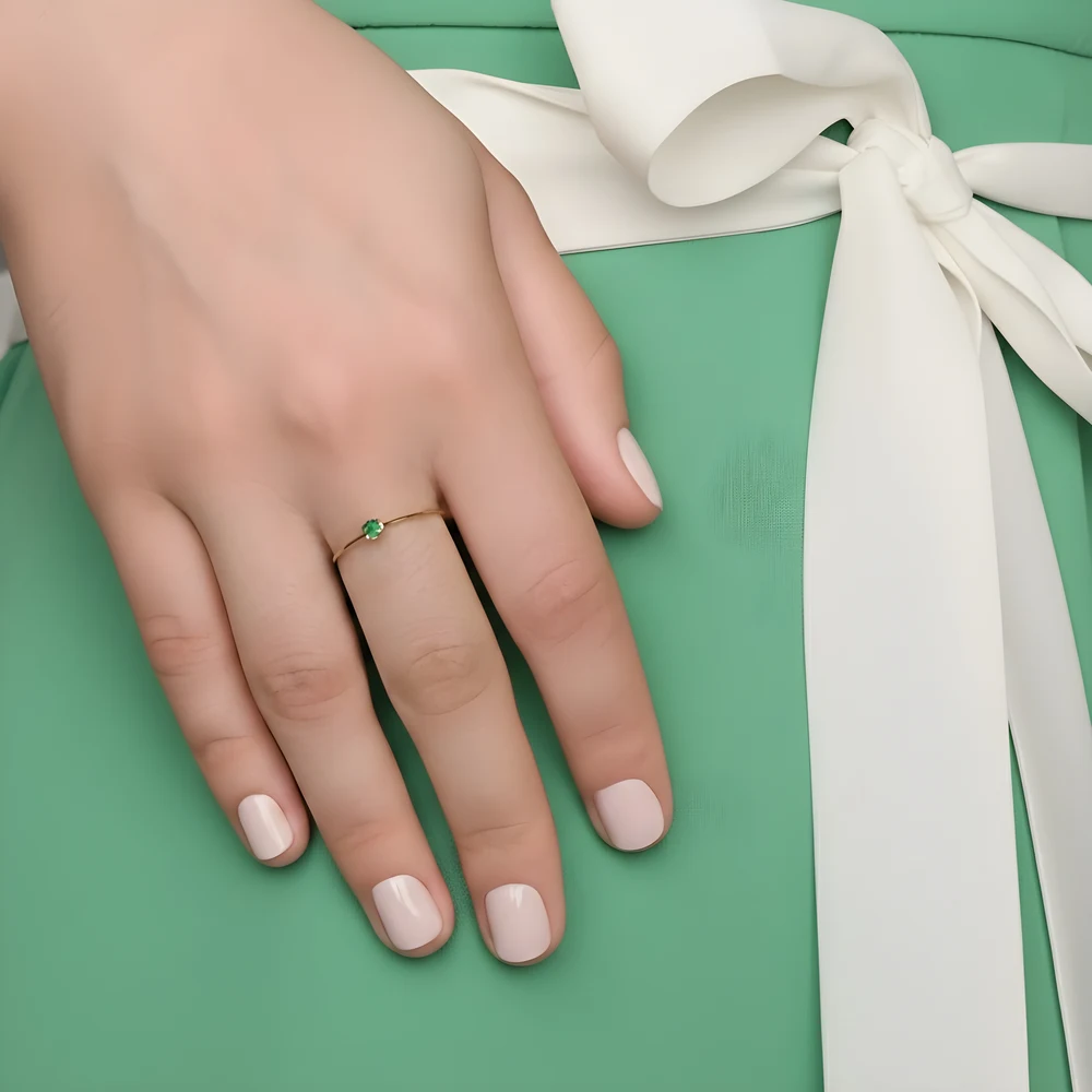 Anel Solitário de Ouro 18k com Esmeralda Redonda