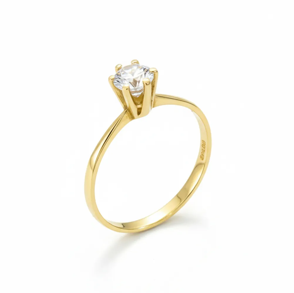 Anel Solitário de Ouro 18k Garras Altas e Brilhante 20 Pontos